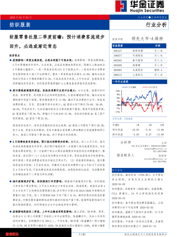 【华金证券】【20200503】纺服零售社服二季度前瞻:预计消费客流逐步回升,必选或渐近常态-21页 行业研究
