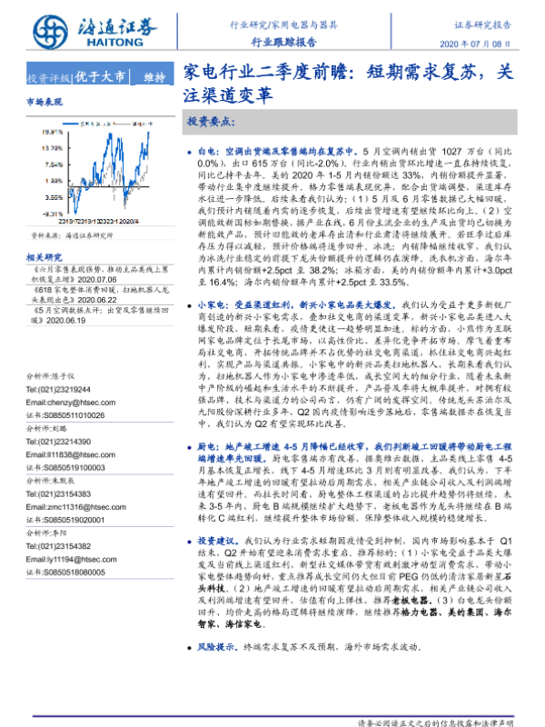 【海通证券】【20200708】家电行业二季度前瞻:短期需求复苏,关注渠道变革-6页 行业研究