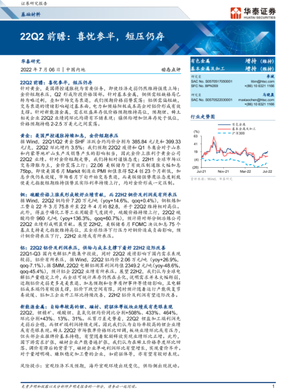【华泰证券】【20220706】基础材料22Q2前瞻:喜忧参半,短压仍存-5页 行业研究