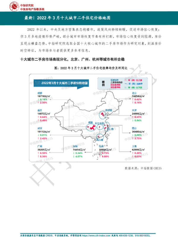 【中指研究院】【20220409】2022年3月十大城市二手住宅价格地图-22页 市场调研