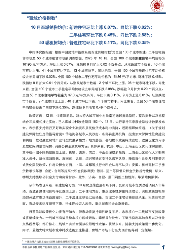 【中指研究院】【20231109】2023-11-09-房地产-“百城价格指数”-17页 行业研究
