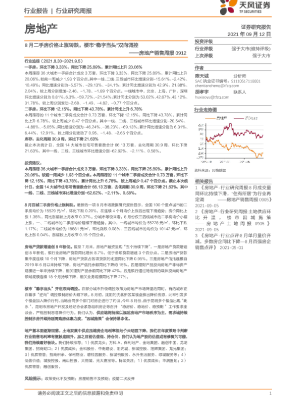 【天风证券】【20210912】8月二手房价格止涨转跌,楼市“稳字当头”双向调控-14页 行业研究