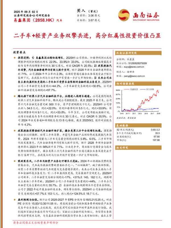 【西南证券】【202509】二手车+轻资产业务双擎共进,高分红属性投资价值凸显-28页 证券期货研究报告