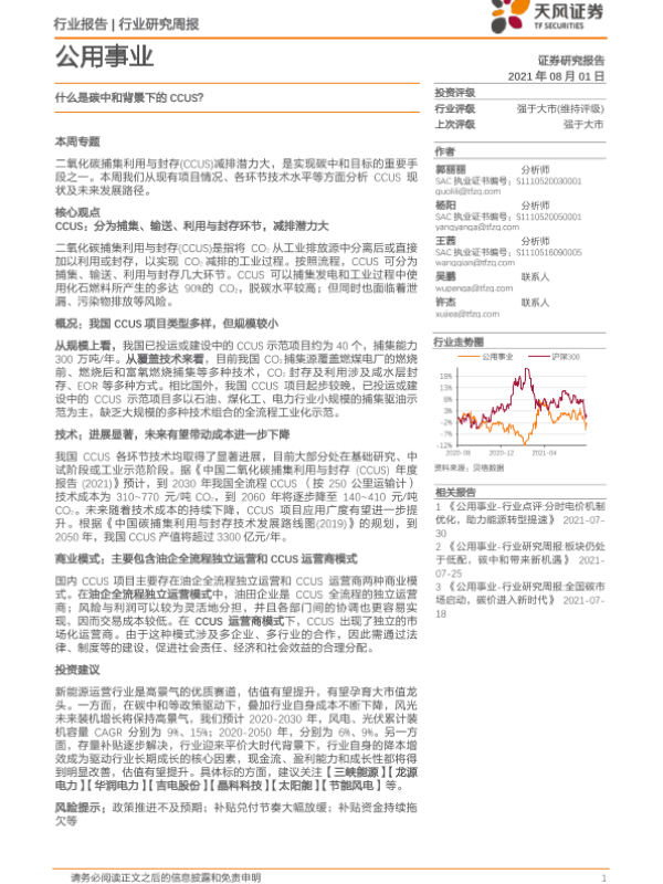 【中泰证券】【20210801】环保及公用事业行业周报:碳中和落地的重要抓手,CCUS发展前景向好-23页 行业研究