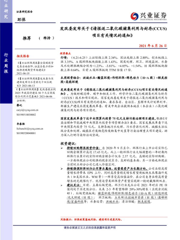 【兴业证券】【20210626】发改委发布关于《请报送二氧化碳捕集利用与封存(CCUS)项目有关情况的通知》-9页 行业研究