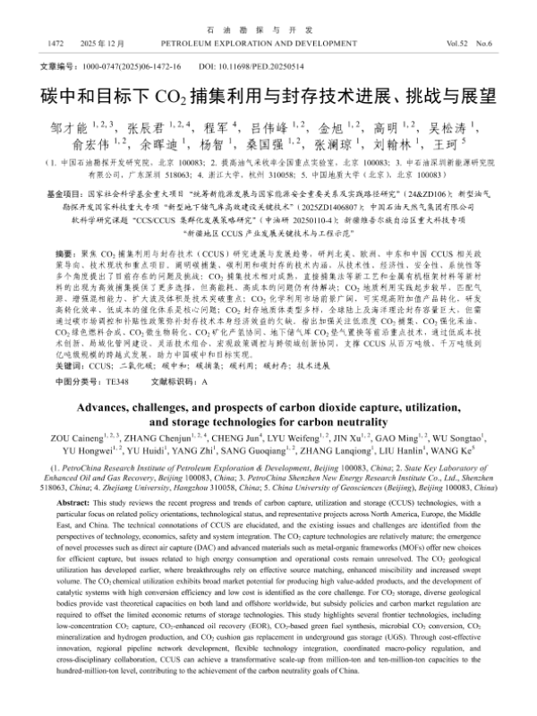 中国石油勘探开发研究院&提高油气采收率全国重点实验室&中石油深圳新能源研究院有限公司&浙江大学&中国地质大学(北京) 科学技术 2025年 PDF 2.22 MB