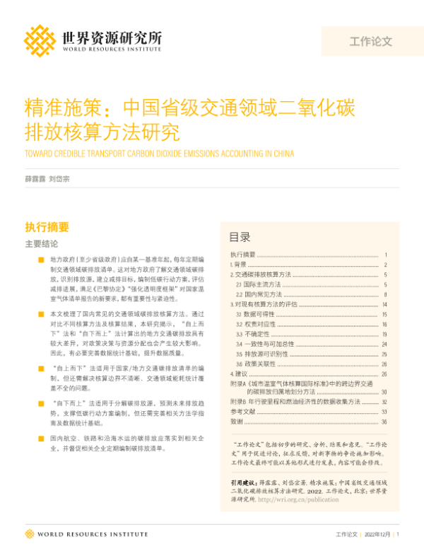 【世界资源研究所】【202212】精准施策:中国省级交通领域二氧化碳排放核算方法研究-36页 行业研究