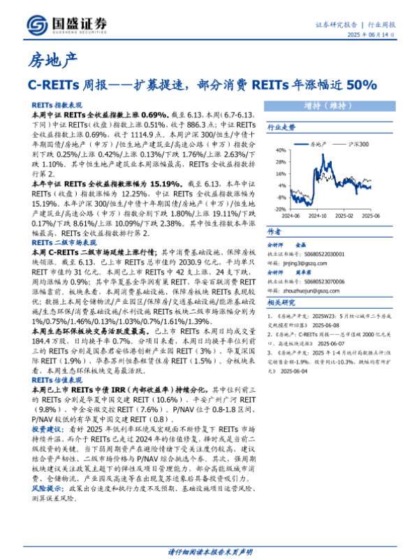 【国盛证券】【20250614】房地产C-REITs周报_扩募提速_部分消费REITs年涨幅近50%-11页 证券期货研究报告