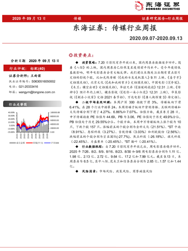 【东海证券】【20200913】20200913-东海证券-传媒行业周报-7页 行业研究
