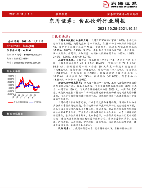 【东海证券】【20211101】20211101-东海证券-食品饮料行业周报-8页 行业研究