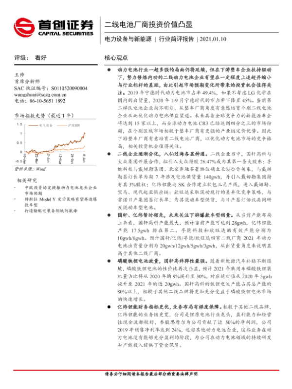 【首创证券】【20210110】20210110-首创证券-电力设备与新能源行业简评报告:二线电池厂商投资价值凸显-16页 行业研究