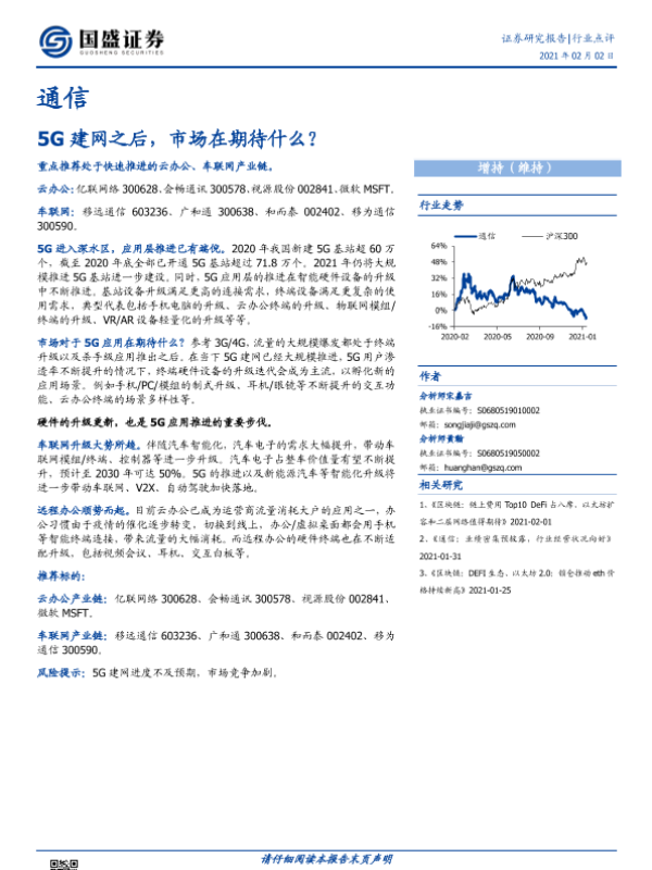 【国盛证券】【20210202】通信行业点评:5G建网之后,市场在期待什么?-2页 行业研究