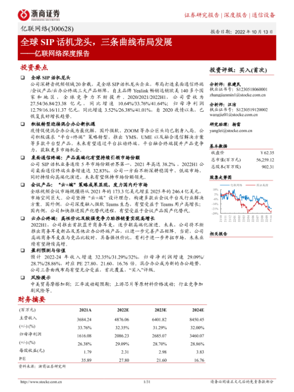 【浙商证券】【20221013】亿联网络深度报告:全球SIP话机龙头,三条曲线布局发展-31页 行业研究