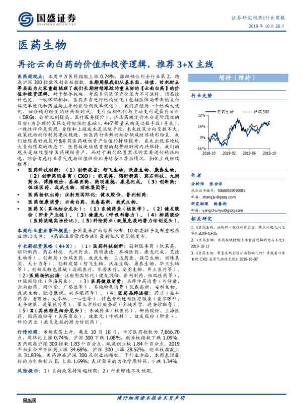 【国盛证券】【20191020】医药生物行业周报:再论云南白药的价值和投资逻辑,推荐3+X主线-19页 行业研究