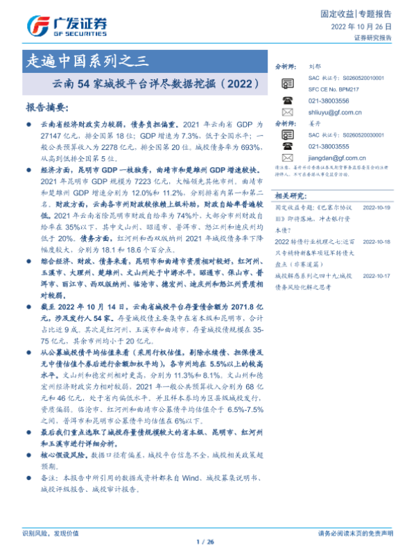 【广发证券】【20221026】走遍中国系列之三:云南54家城投平台详尽数据挖掘(2022)-26页 行业研究