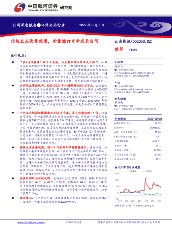 【银河证券】【20220808】深度报告-20220808-中国银河-云南能投-002053.SZ-传统主业优势稳固_新能源打开新成长空间-27页 行业研究