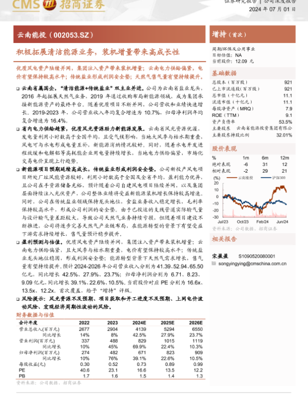 【海通证券】【20240701】云南能投(002053)积极拓展清洁能源业务,装机增量带来高成长性-21页 行业研究