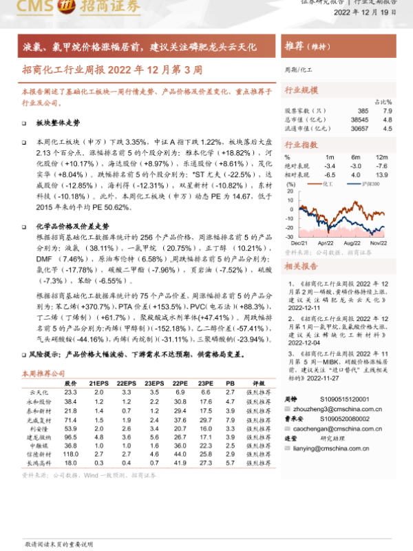 【海通证券】【20221211】招商化工行业周报:磷酸、黄磷价格持续上涨,建议关注磷肥龙头云天化-23页 证券期货研究报告
