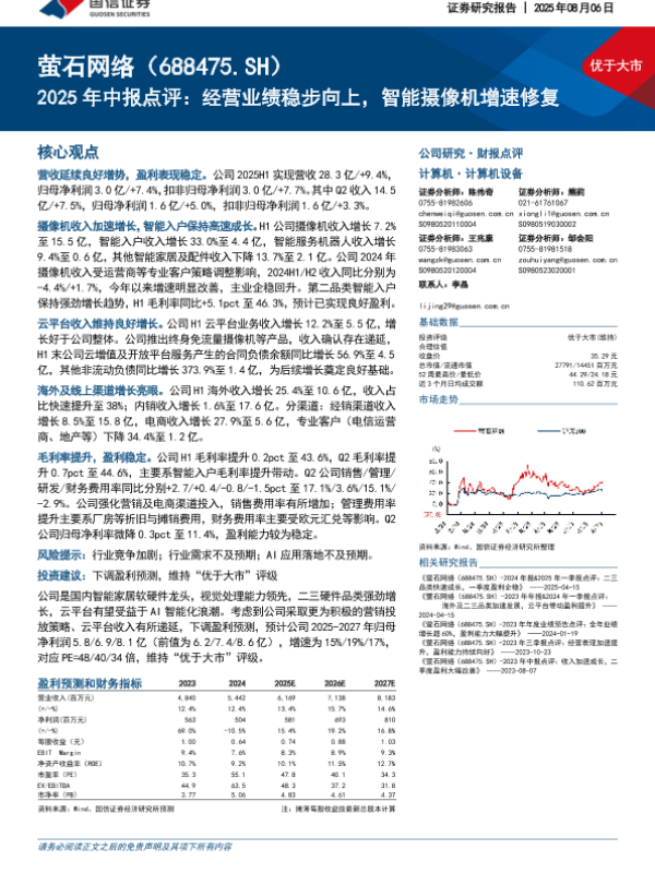 【国信证券】【20250806】2025年中报点评:经营业绩稳步向上,智能摄像机增速修复-6页 证券期货研究报告