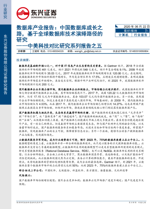 【东兴证券】【20200622】20200622-东兴证券-计算机:中美科技对比研究系列报告之五-数据库产业报告:中国数据库成长之路,基于全球数据库技术演绎路径的研究-39页 行业研究