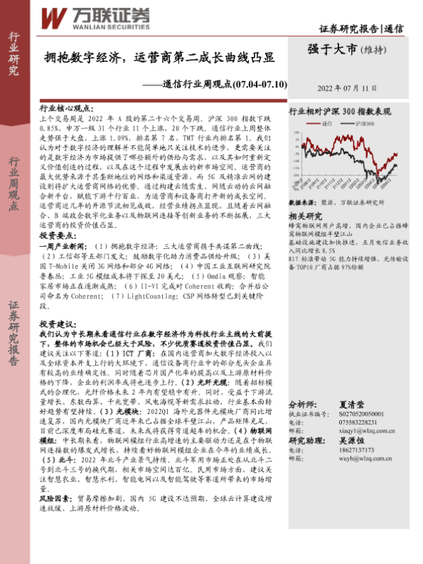 【万联证券】【20220711】拥抱数字经济,运营商第二成长曲线凸显-11页 行业研究