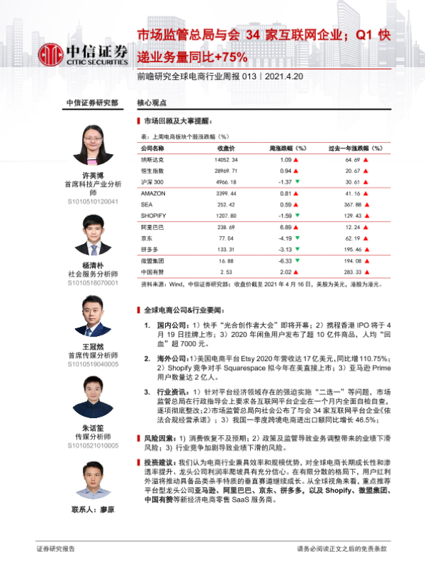 【中信证券】【20210420】前瞻研究全球电商行业周报-20页 行业研究
