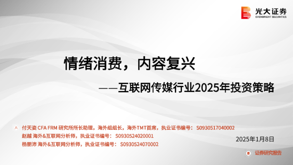 【光大证券】【20250108】互联网传媒行业2025年投资策略:情绪消费,内容复兴-53页 行业研究