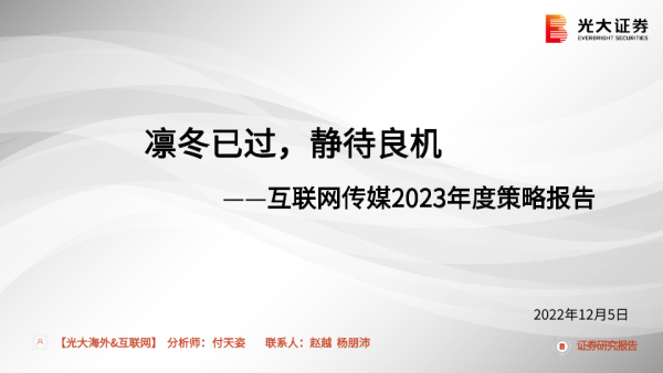 【光大证券】【20221205】互联网传媒2023年度策略报告:凛冬已过,静待良机-51页 行业研究