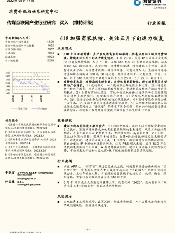 【国金证券】【20220517】618加强商家扶持,关注五月下旬运力恢复-16页 行业研究