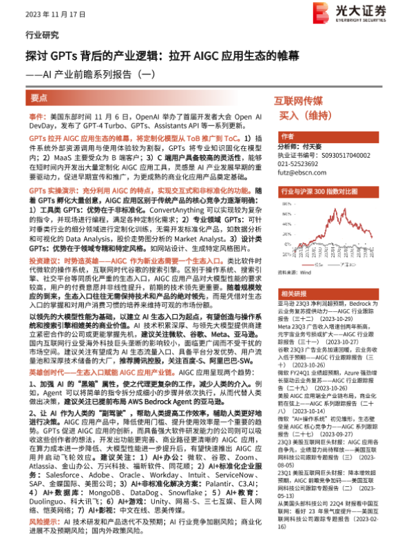 【光大证券】【20231117】探讨GPTs背后的产业逻辑:拉开AIGC应用生态的帷幕-13页 行业研究