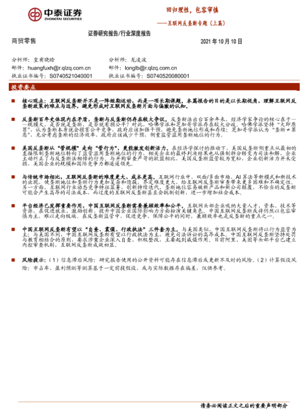 【中泰证券】【20211010】商贸零售行业:互联网反垄断专题(上篇),回归理性,包容审慎-20页 行业研究