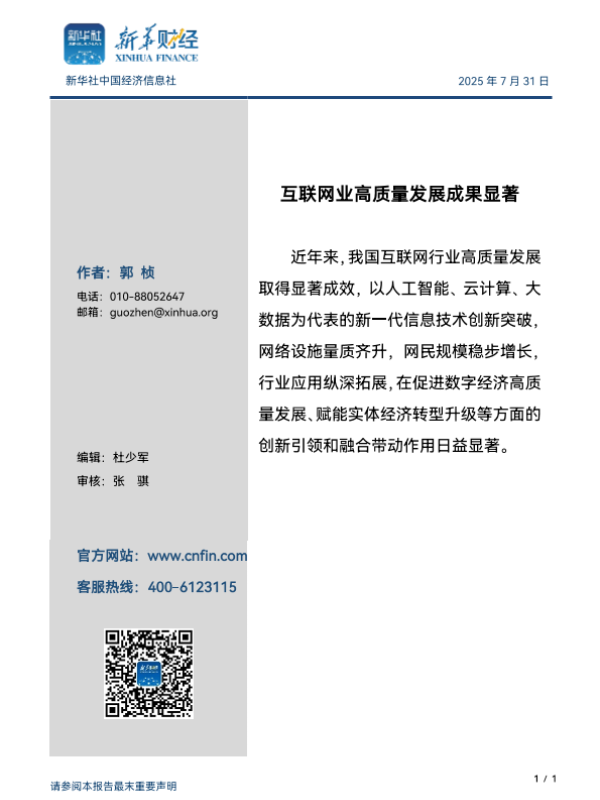 【新华社中国经济信息社】【202507】互联网业高质量发展成果显著-5页 行业研究