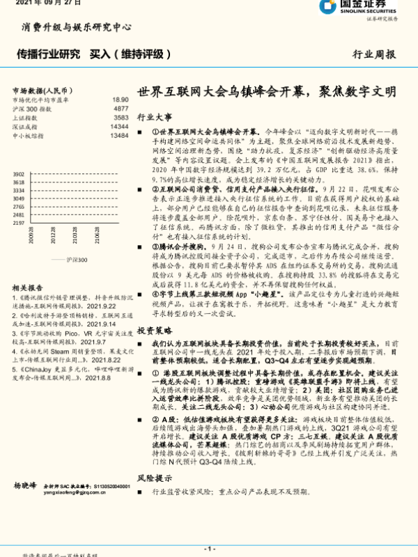【国金证券】【20210927】20210927-国金证券-传播行业研究:世界互联网大会乌镇峰会开幕,聚焦数字文明-16页 行业研究