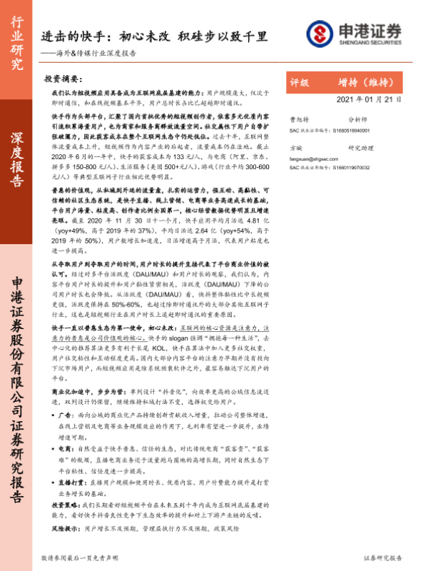 【申港证券】【20210121】进击的快手:初心未改积硅步以致千里-48页 行业研究