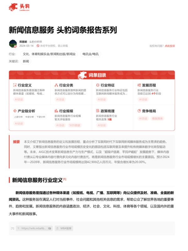 【头豹研究院】【20240314】新闻信息服务 头豹词条报告系列-15页 行业研究