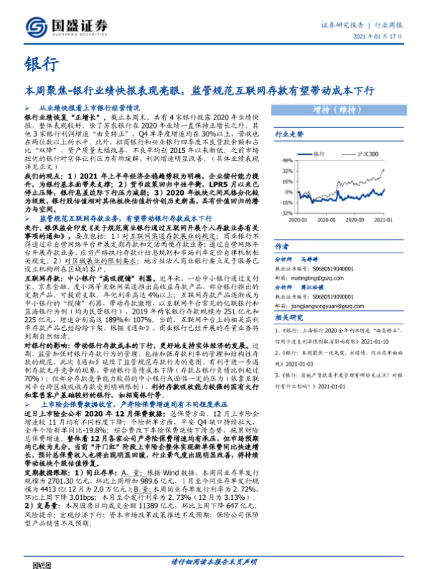 【国盛证券】【20210117】银行本周聚焦:银行业绩快报表现亮眼,监管规范互联网存款有望带动成本下行-14页 行业研究