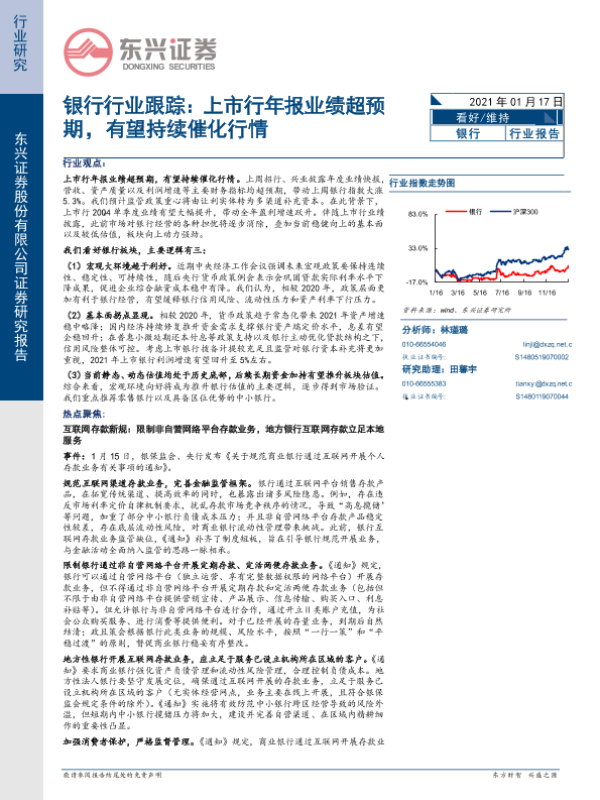 【东兴证券】【20210117】银行行业跟踪:上市行年报业绩超预期,有望持续催化行情-14页 行业研究