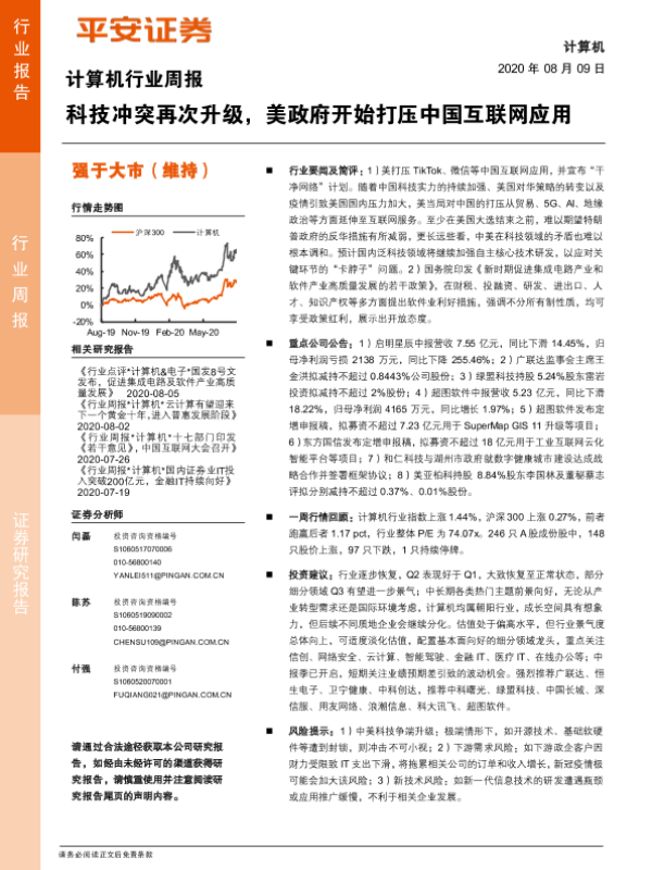 【平安证券】【20200809】计算机行业周报:科技冲突再次升级,美政府开始打压中国互联网应用-5页 行业研究