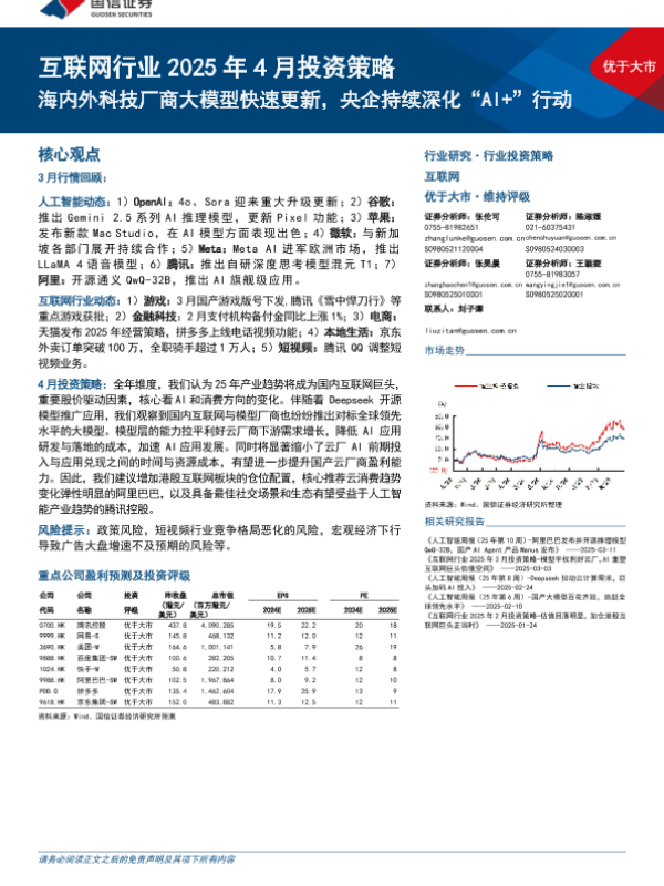 【国信证券】【202504】互联网行业2025年4月投资策略-18页 行业研究