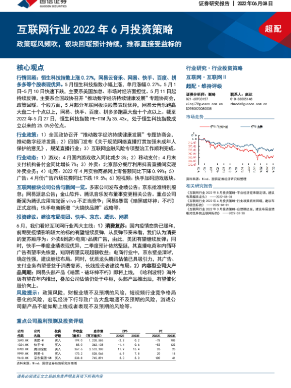 【国信证券】【20220608】互联网行业2022年6月投资策略:政策暖风频吹,板块回暖预计持续,推荐直接受益标的-20页 行业研究