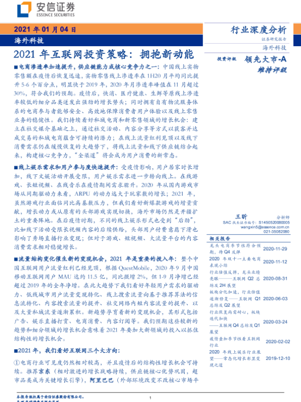 【安信证券】【20210104】2021年互联网投资策略:拥抱新动能-39页 行业研究