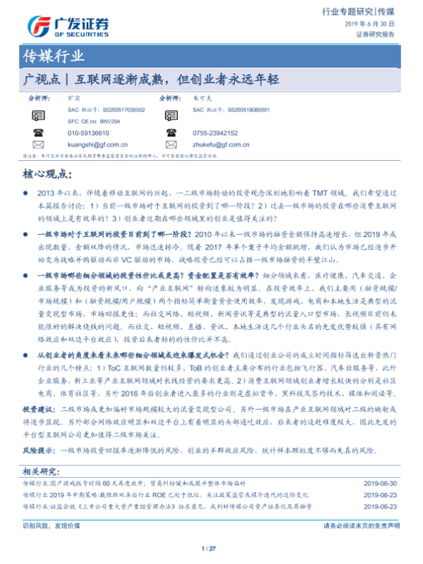 【广发证券】【20190630】广视点丨互联网逐渐成熟,但创业者永远年轻-27页 行业研究