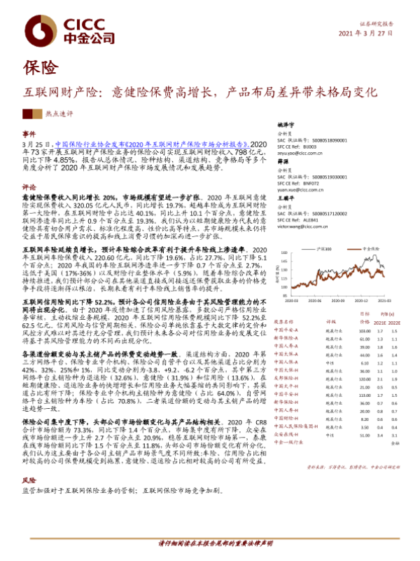 【中金公司】【20210327】互联网财产险:意健险保费高增长,产品布局差异带来格局变化-6页 行业研究