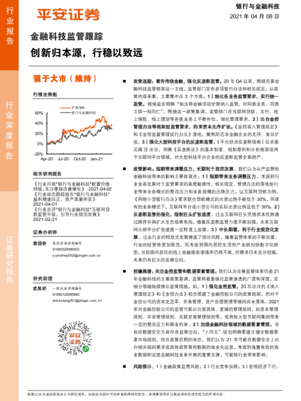 【平安证券】【20210408】金融科技监管跟踪:创新归本源,行稳以致远-20页 行业研究