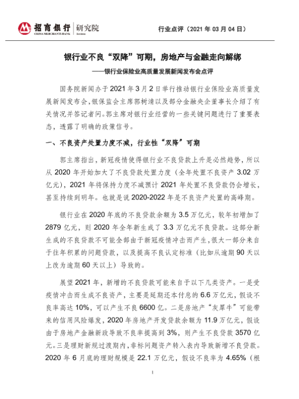 【招商银行】【20210304】银行业保险业高质量发展新闻发布会点评-4页 会议纪要