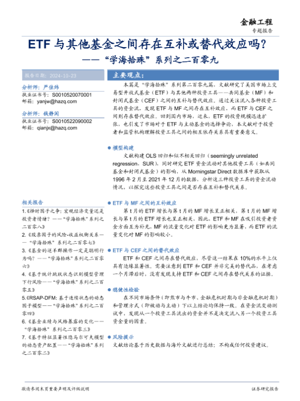 【华安证券】【20241023】ETF与其他基金之间存在互补或替代效应吗?-19页 行业研究