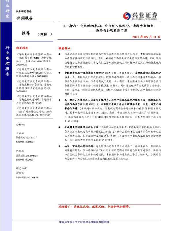 【兴业证券】【20210511】五一折扣:中免稳如泰山、中出服5倍积分、海控力度加大-11页 行业研究