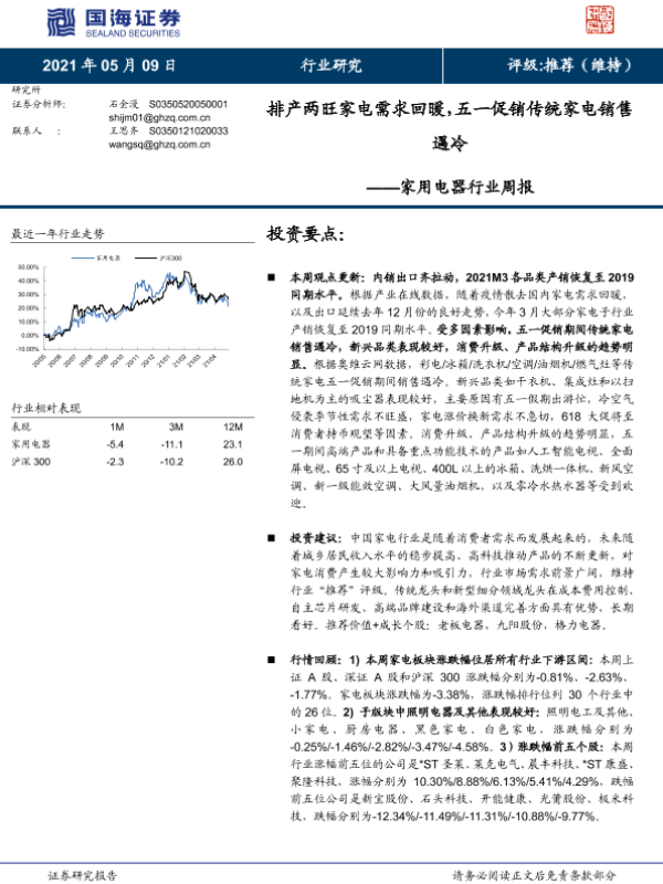 【国海证券】【20210509】排产两旺家电需求回暖,五一促销传统家电销售遇冷-13页 行业研究