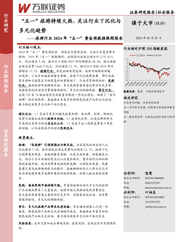 【万联证券】【20240507】旅游行业2024年“五一”黄金周数据跟踪报告:“五一”旅游持续火热,关注行业下沉化与多元化趋势-7页 行业研究