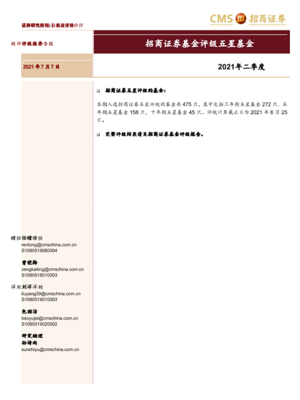 【海通证券】【20210707】2021年二季度:基金评级五星基金-15页 行业研究